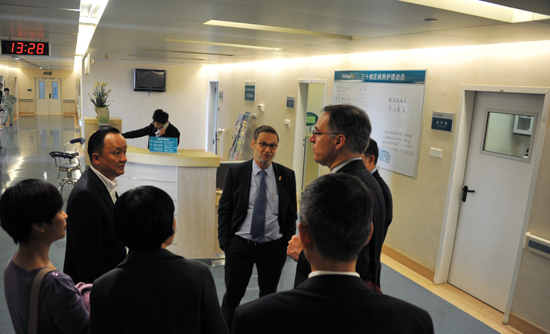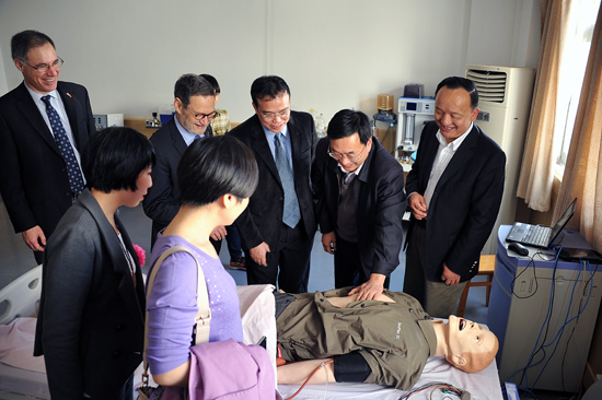 10月31日下午,加拿大McGill大学副校长、医学院院长H.Eidelman、家庭医生科主任Bergman在中南大学副校长张灼华、国际交流与合作处处长余志明的陪同下来院访问,先后来到医院普外一科、新生儿科病房及临床技能中心参观,就病房医疗、医学教育等与医院领导及工作人员进行交流,对医院医疗水平及人才培养尤其是八年制医学教育理念、设施等方面的工作给予了高度评价。院长陈方平及医院办公室、护理部、人才培养办相关负责人陪同。