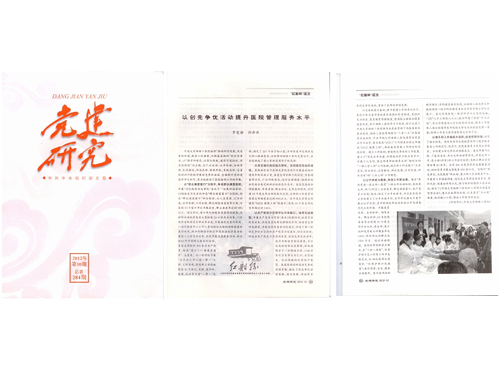 另悉,由医院党委罗爱静书记等撰写的理论文章《以创先争优活动提升医院管理服务水平》在中组部党建研究所、党建研究杂志社主办的“红船杯”十八大征文活动中脱颖而出,并在中组部主管的《党建研究》2012年第10期发表。该文全面介绍了我院围绕中心抓党建,创先争优促发展的先进经验、做法和成效。