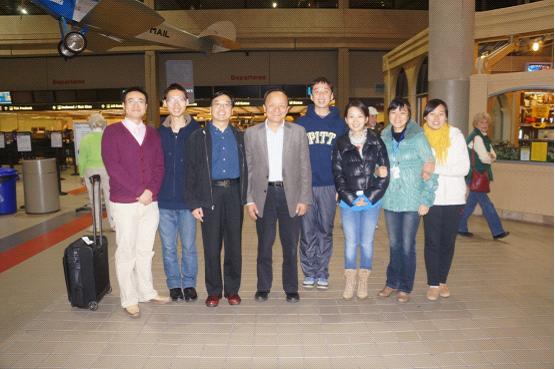 同学们在匹兹堡机场欢迎陈院长的到来