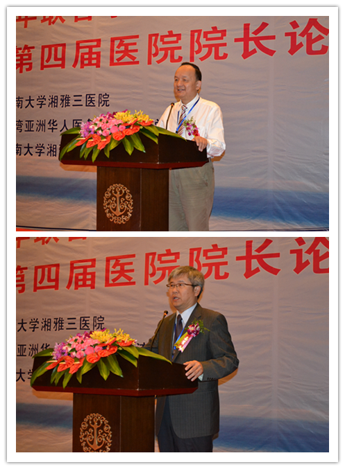 大会主席湘雅三医院院长陈方平、亚洲华人医务管理交流学会理名誉事长张焕祯致辞