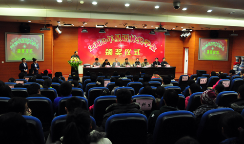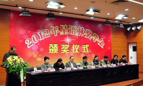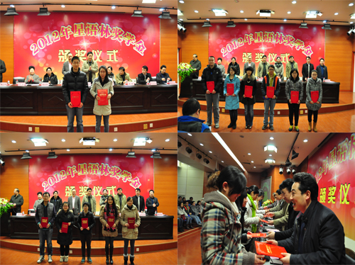 12月25日晚,2012年星语林奖学金颁奖仪式在湘雅三医院外科楼二楼国际学术报告厅举行。创普房地产开发(集团)有限公司董事长林新愉先生,其夫人尹玲女士;中南大学研究生工作部部长白毅,研究生院培养办主任陈立章;湘雅医学院副院长何庆南,党委副书记赵永正;湘雅三医院党委书记罗爱静,院长陈方平,副院长黄飞舟在主席台就座。湘雅三医院教务部、研究生部等相关部门负责人,100余名师生参与了颁奖仪式。颁奖仪式由黄飞舟主持。
