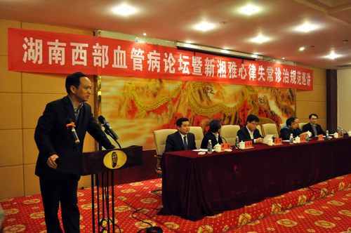 吴希林在开幕式上发言。他首先对论坛召开表示祝贺,并针对大家对“新湘雅‘心连心’”的疑问做出了阐释,他表示,“新湘雅”就是湘雅三医院要在传承老湘雅优良传统前提下,结合新形式开拓创新,走出有湘雅三医院特色的发展道路;“心连心”指的是湘雅三医院心内科专家与基层医疗机构医务人员心连心,湘雅三医院与基层群众心连心。他还指出,国家医改归根结底都是以发展为基础的,希望我们的论坛立足于发展,实现合作共赢,给更多的心律失常患者带来福音。