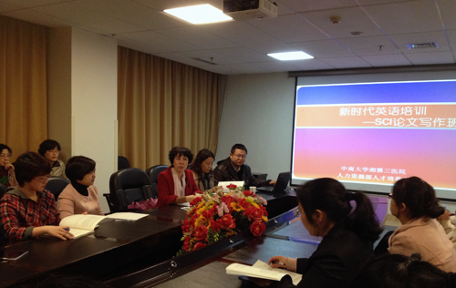 人才办主任刘新春对SCI写作班的开设进行了说明。她说,论文是科学研究成果的重要表达方式,医学研究和学位教育均需要发表高质量、高水平的英文文章。人才办通过调研,发现SCI论文写作和发表是一直以来困扰着医院医务人员的难题,有时候甚至成为了制约医学人才成长和职业发展的瓶颈。通过与相关医学专家、英语专业老师深入沟通,人才办决定在2013年新时代英语培训中开设“SCI论文写作班”,并将该班列入长期培训计划,持续改进,定期开展,为提高我院医护人员和医学生的写作水平提供帮助。
