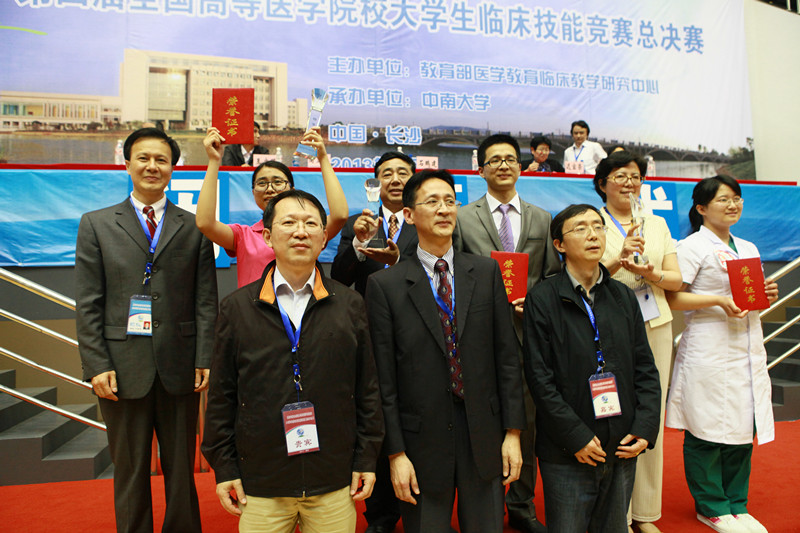 5月18-19日,第四届全国高等医学院校大学生临床技能竞赛总决赛在湘雅医学院体育馆举行。来自东北华北、华东、华中、华南和西南西北5个赛区的42支队伍,参与五轮比赛的激烈角逐。我校代表队力压群雄,荣获特等奖,其中一名队员为我院选派的官笑梅。据悉,这是我校继第三届比赛后再次获得特等奖,充分展现了湘雅医学教育应有的水平。