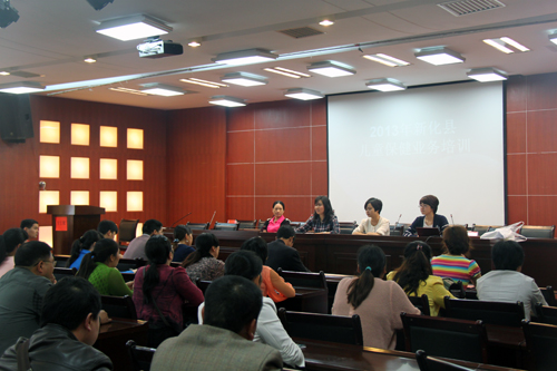 在授课开始之前新化县卫生局长、县儿保办主任、县妇幼医院院长对此次活动进行了简单介绍,并对我院儿科给予的支持表示感谢,结合现阶段农村儿童的健康提出了一系列问题,针对这些问题儿科邓媛瑛主治医生一一进行了解答。