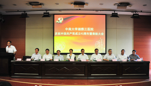 6月28下午,湘雅三医院庆祝建党92周年暨总结表彰会在外科大楼国际学术报告厅隆重举行。大会主题是回顾党的光辉历程和艰辛探索,以党的辉煌成就和伟大精神凝聚全院共产党员和全体职工的力量,以党的建设引领湘雅三医院科学发展,为实现“湘雅在全国进前三”的目标作出湘雅三医院应有的贡献。校党委常委、副校长田勇泉发表重要讲话,院党委书记罗爱静做主题报告,院长陈方平宣读表彰决定,院党委副书记吴希林主持会议。院领导袁洪、朱晒红、黄进华、黄飞舟、邓云龙、杨飞龙出席会议。