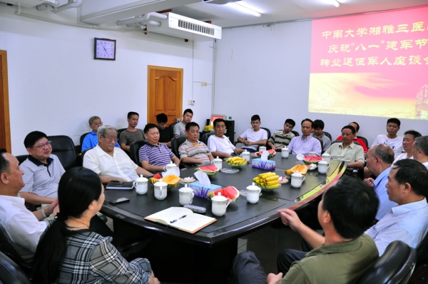 7月31日,医院在综合楼一会议室召开庆祝“八一”退伍军人座谈会,院领导罗爱静、陈方平、吴希林、朱晒红、黄进华、邓云龙与我院退伍、转业“老兵”“新兵” 一同庆祝中国人民解放军建军86周年并座谈。