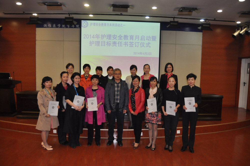 每年4月是医院护理安全教育月,今年的安全教育赋予了新的主题,由卫生计生委发布的两项卫生行业标准《护理分级》和《静脉治疗护理技术操作规范》将于5月1日正式实施。为此,护理部精心策划“安全教育月”活动,把新的要求纳入护理目标管理。4月3日下午,护理部举行护理目标责任书签订仪式,拉开了“安全教育月”活动月的序幕。主管院领导朱晒红参加。