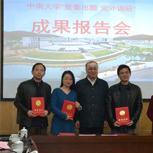 1月23下午,学校统一战线“党委出题、党外调研”成果报告会暨情况通报会在科教楼会议室召开。校领导高文兵、黄健柏、李亮出席会议,湘雅三医院消化内科王芬代表农工党宋治以“基于国内外大学排行榜探讨中南大学创新发展”为题,详细汇报了学校创新发展的调研成果,我院党委副书记、工会主席邓云龙参加了会议。