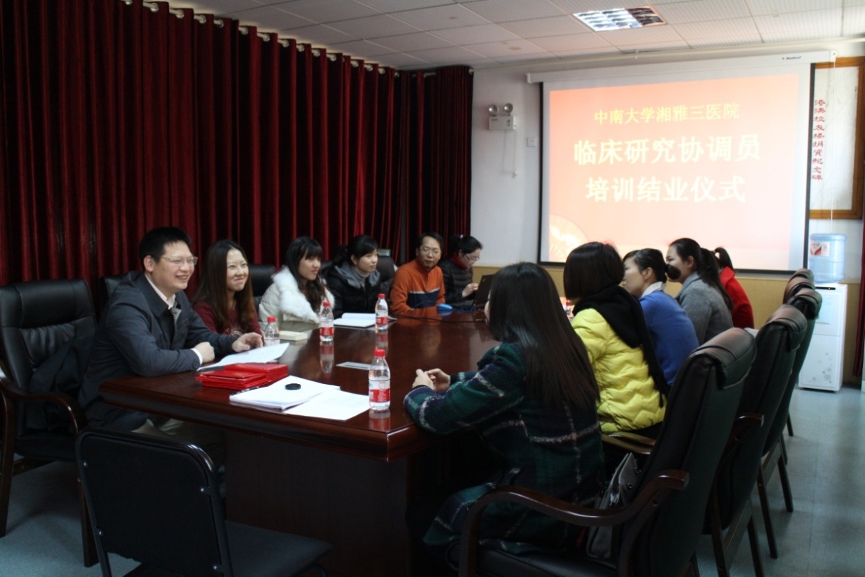 1月21日,“中南大学湘雅三医院院内临床研究协调员(CRC)第一期培训班结业仪式”在药物临床试验机构会议室成功举行。消化科冯迎迎、心内科周小薇、机构办的梁菁等9名临床研究协调员(CRC)经过3个月系统培训,最后顺利通过了考核取得了结业证书。