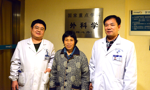 胸外科以金龙玉主任医师、曾磊主治医师为主的手术小组与手术、麻醉、输血科等相关部门对患者病情进行了认真仔细地评估,尽可能制定了一个周密的手术方案,经过精心术前准备后,历经2小时紧张而细致的“战斗”,1.65公斤重的巨大肿瘤被完整切除。在全科医护人员的共同努力下,患者顺利度过了呼吸、循环、感染“三大难关”,术后未发生任何术后并发症,恢复良好。