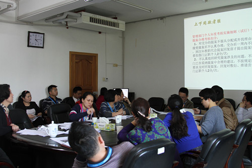 4月14日下午,综合楼三楼一会议室,院工会召开四届一次教职代会提案交办会。会议由工会常务副主席徐绍容主持,各提案承办部门负责人参加了会议,党委副书记兼工会主席邓云龙出席并讲话。
