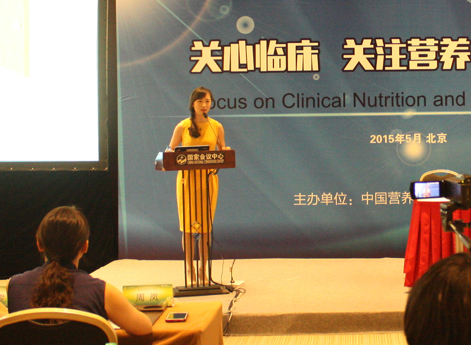 中国营养学会第十二次全国营养科学大会(暨中国营养学会成立70周年庆典)于2015年5月16-18日在北京国家会议中心召开。在本次会议举办的“我爱临床营养”演讲比赛中,我院营养科王萌获得二等奖,并以其自信的表现、较高的演讲技巧获得临床营养分会薛长勇主任委员的赞扬。