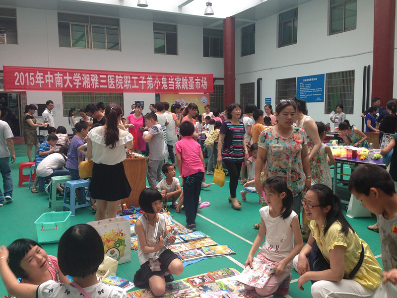 6月1日下午,综合楼中厅早早的就被40多个“小老板”的摊位占据,毛茸茸的布偶娃娃、八九成新的童话书、威风凛凛的动力小火车,精致的蝴蝶结……让人看得眼花缭乱,这正是为庆祝六一儿童节,院工会特为我院孩子们举办的“小鬼当家”跳蚤市场活动现场。