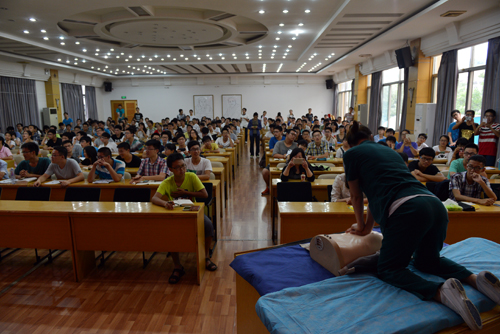 为了普及自救自护技能,促进大学生养成良好的安全行为习惯,6月3日,湘雅三医院社会服务部组织急诊120医护人员,携带模拟人和急救器材来到中南大学学生食堂礼堂,为一百余名大学学生副班长(负责学生安全的学生干部)上了一堂“时间=生命”精彩的急救知识讲座。