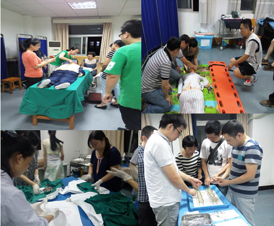随后的两晚培训学习中,由唐晓鸿等11名具有丰富指导经验的临床医师授课,培训采取理论授课与实践技能操作相结合的方式进行。培训的内容根据2015年度国家执业医师临床技能考核大纲要求制定,包括全身体格检查、四大穿刺术、手术学基本操作、外科学常用临床技能、急救技术等,充分涵盖了各二级学科基本临床技能。学员们学习热情高昂,态度认真,通过两晚的培训熟练且规范了相关的临床技能基本操作。