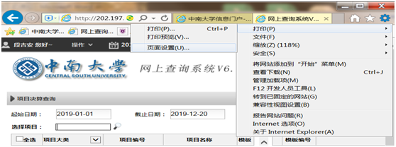 第三步:设置打印显示,打印带有“中南大学”水印的《国家自然科学基金项目结题参考报表》(2021年结题版)。在浏览器的设置—打印—页面设置—勾选打印背景颜色和图像。