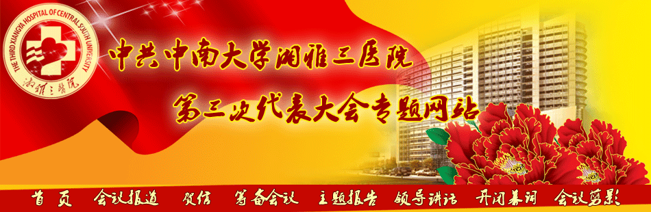 各位代表、同志们,回顾过去,我们倍受鼓舞;展望未来,我们满怀信心。伟大的时代赋予我们光荣的使命,共同的事业召唤我们开拓奋进。有中南大学党政的正确领导,有上级领导和社会各界的关心厚爱,有全院党员和干部职工的同心协力,有医院 25 年历史的深厚积淀,我们完全有信心、有能力实现医院建设发展的宏伟目标。让我们振奋精神、求真务实,坚持党的群众路线,全面深化医院改革,为实现“医院发展、人民满意、职工幸福”的“三院梦”而努力奋斗!