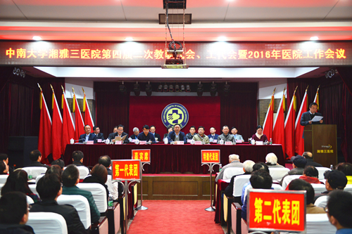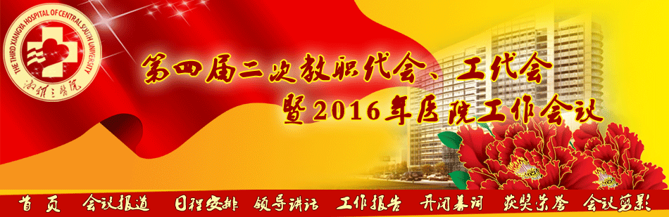 2月26日,湘雅三医院召开四届二次职代会、工代会暨2016年医院工作会议。会议号召全体干部职工深入贯彻落实党的十八大,十八届三中、四中、五中全会精神及习近平总书记系列重要讲话精神,以“四个全面”战略及“五大发展理念”为引领,以提高技术、服务、效率为核心,改革创新,务实发展,谱写医院“十三五”开局精彩篇章,为实现“医院发展、人民满意、职工幸福”的“三院梦”再立新功!