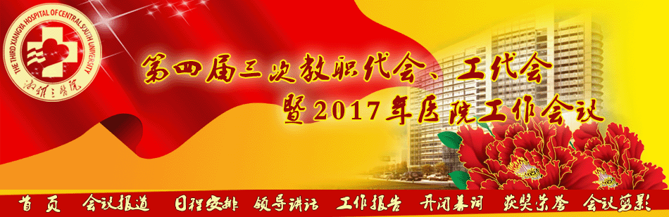 各位代表、同志们:国家、湖南省卫生与健康大会为今后一段时间的卫生和健康工作明确了方向,《“健康中国2030”规划纲要》及《“十三五”深化医药卫生体制改革规划》发布,为医院下一步改革发展指明了道路。让我们把思想和行动进一步统一在“健康中国”战略与“湘雅崛起”大计的旗帜下,振奋精神,勇担使命,不忘初心,继续前行!全院干部职工一道撸起袖子加油干,只要努力奋斗,医院发展、人民满意、职工幸福的“三院梦”定能梦想成真!