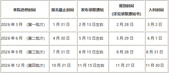 我院每年招收四批次进修人员,2026年进修时间安排如下:
